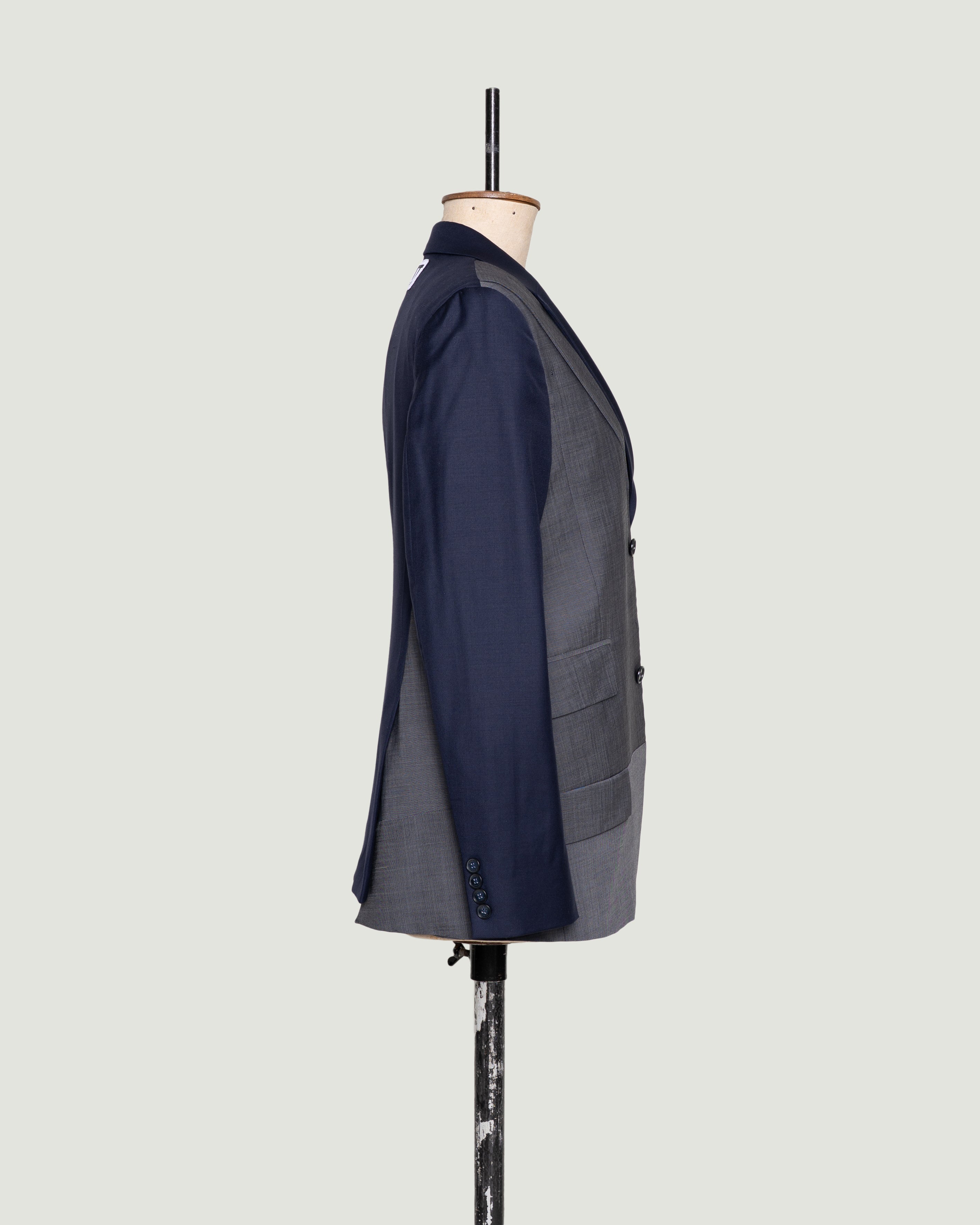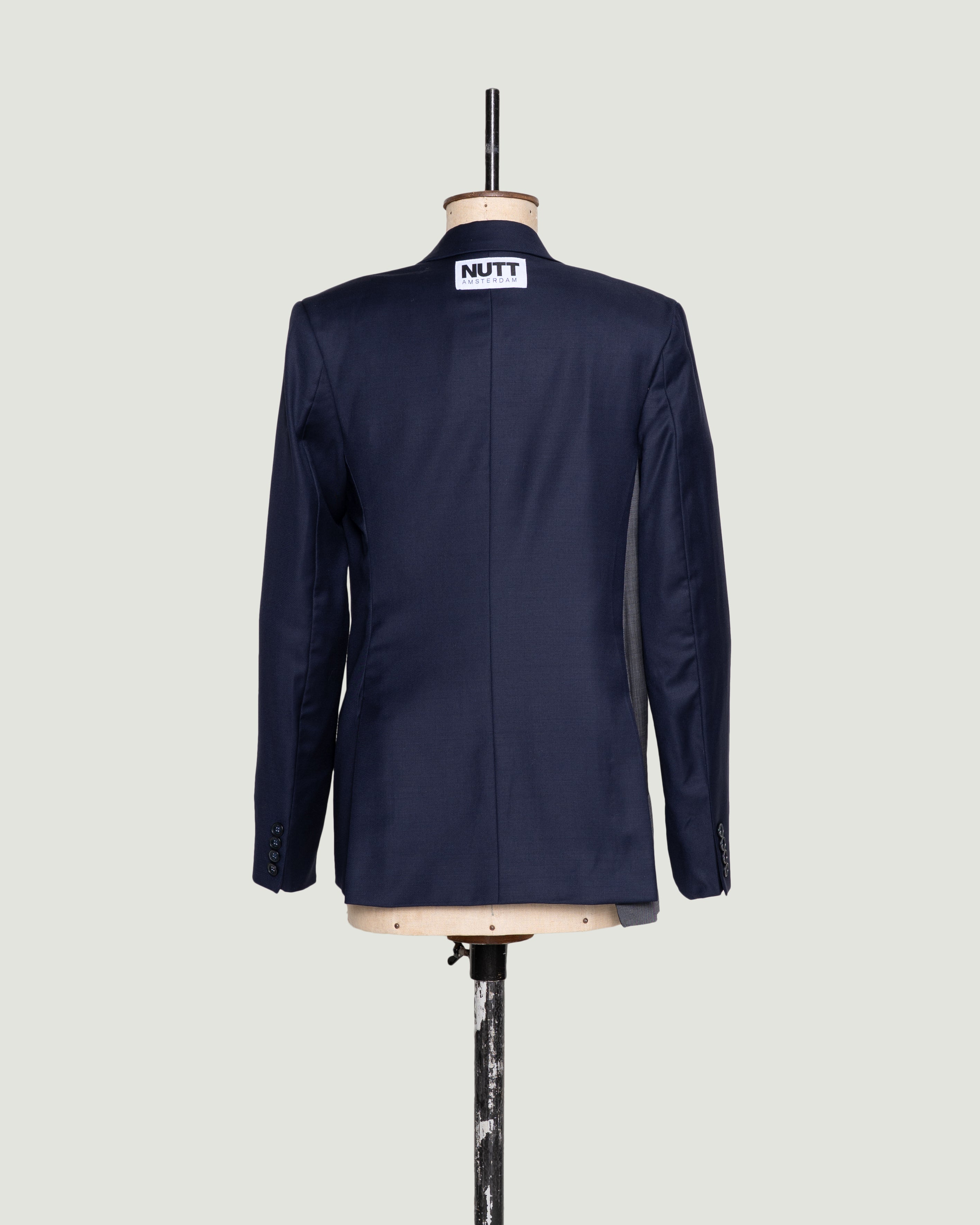ADD is een uniek en stijlvol design, gemaakt van een nooit-meer-gedragen donkerblauwe blazer en een afgedankte muisgrijze. Dit ontwerp geeft een subtiele twist door zijn asymmetrische schuine voorpand en dubbele rij knopen, waarmee je hem op twee manieren kunt sluiten. Draag ‘m stoer of chic – ADD past bij elke stijl.