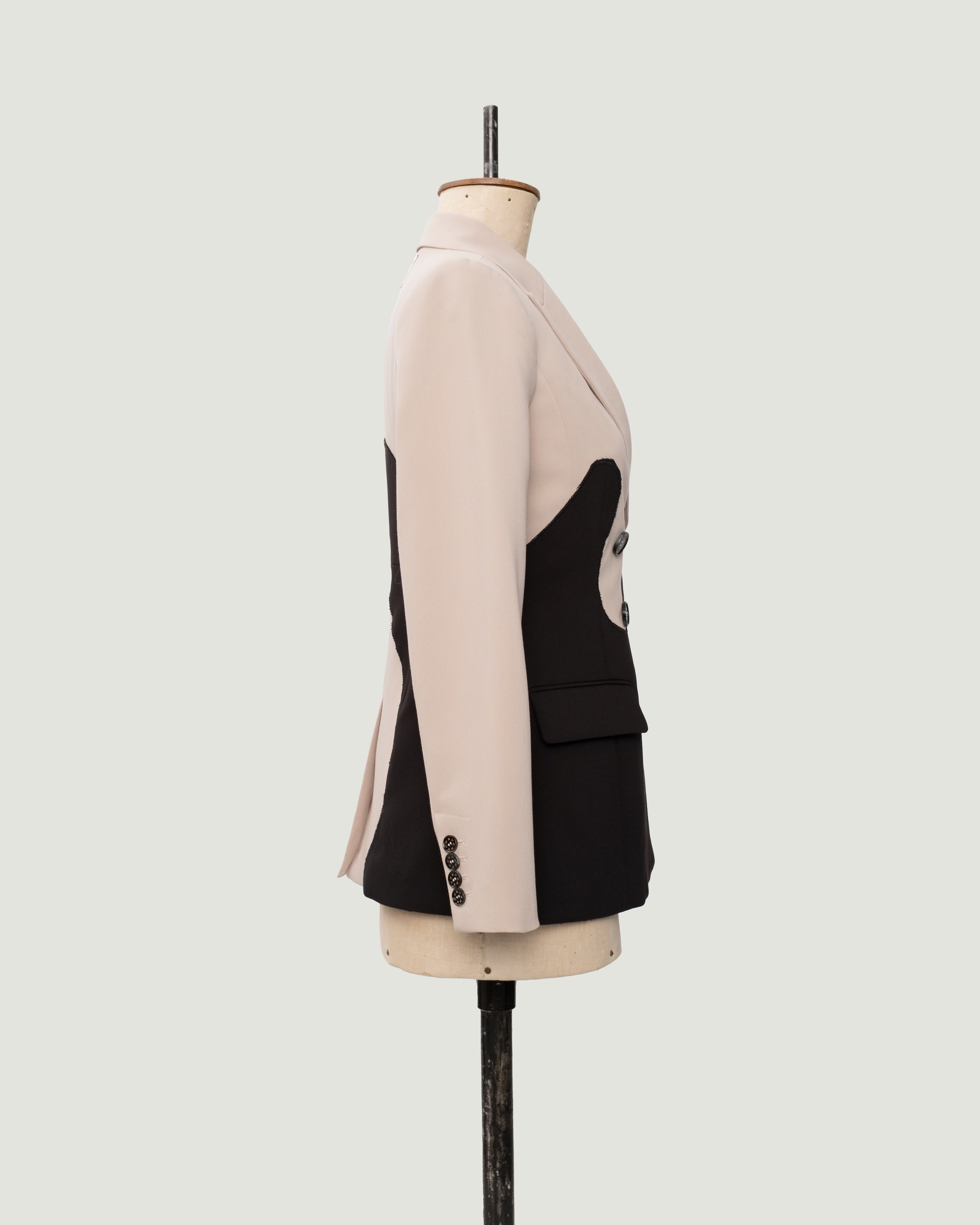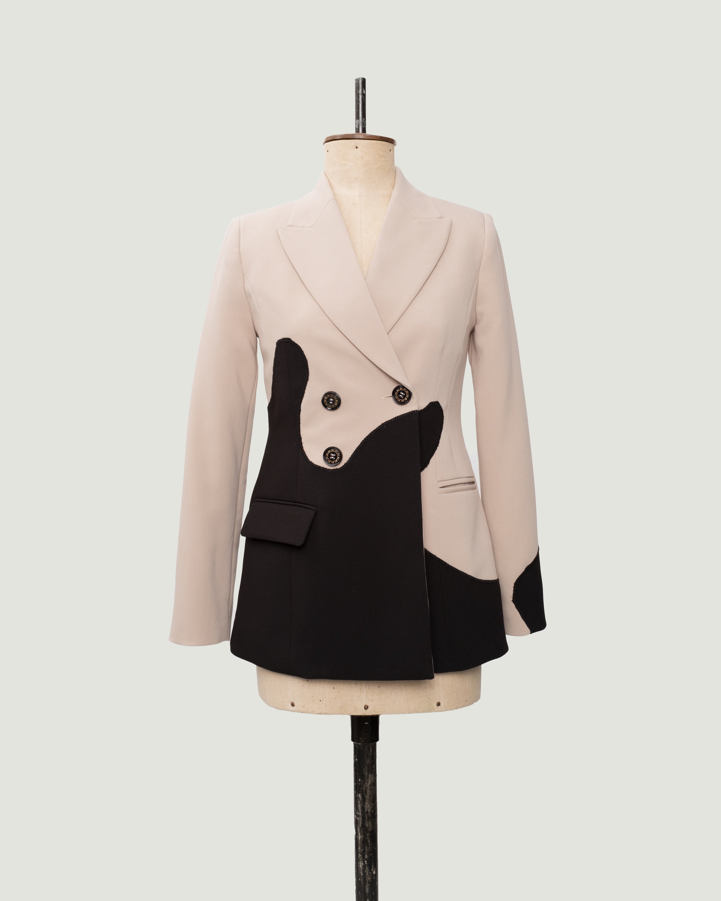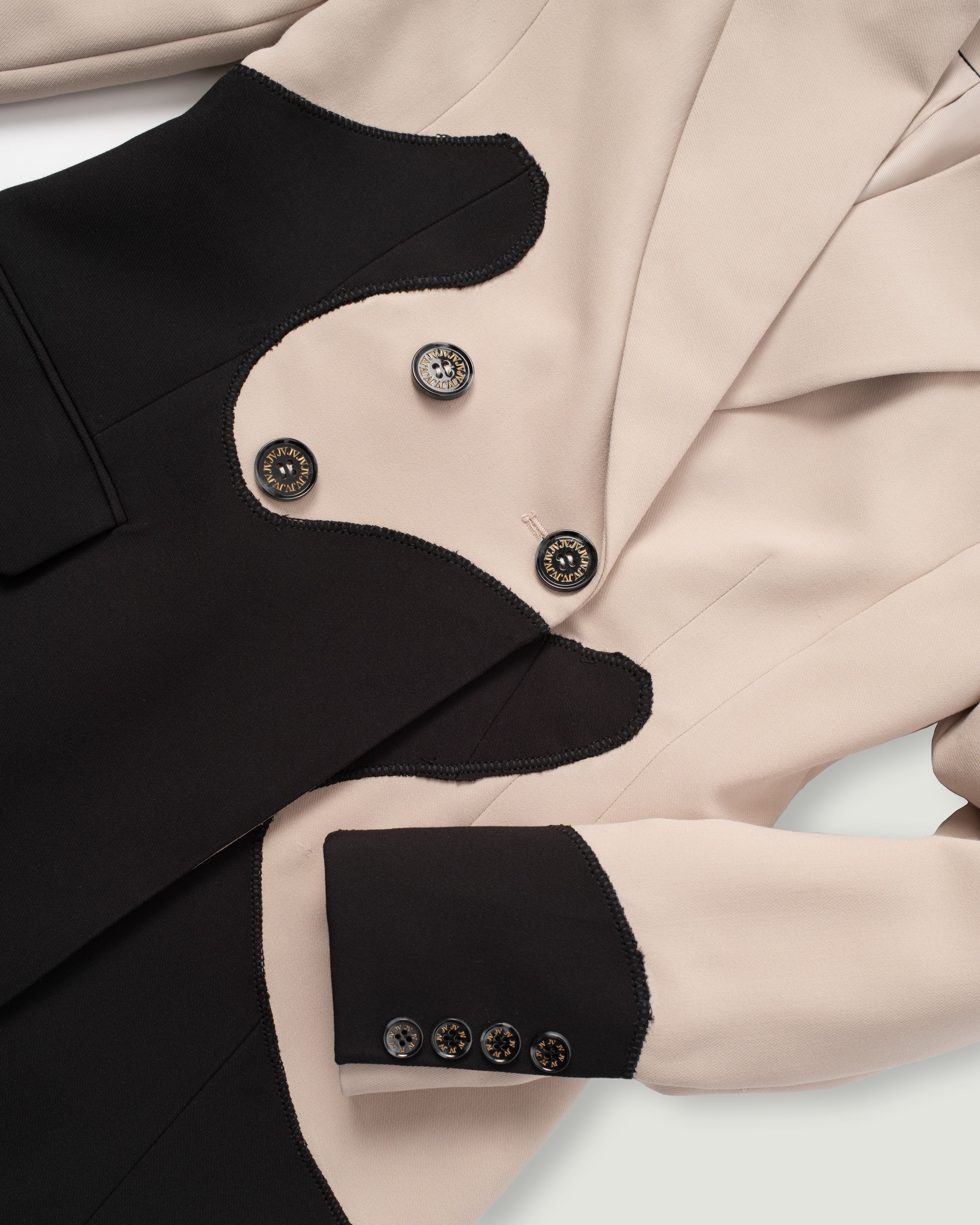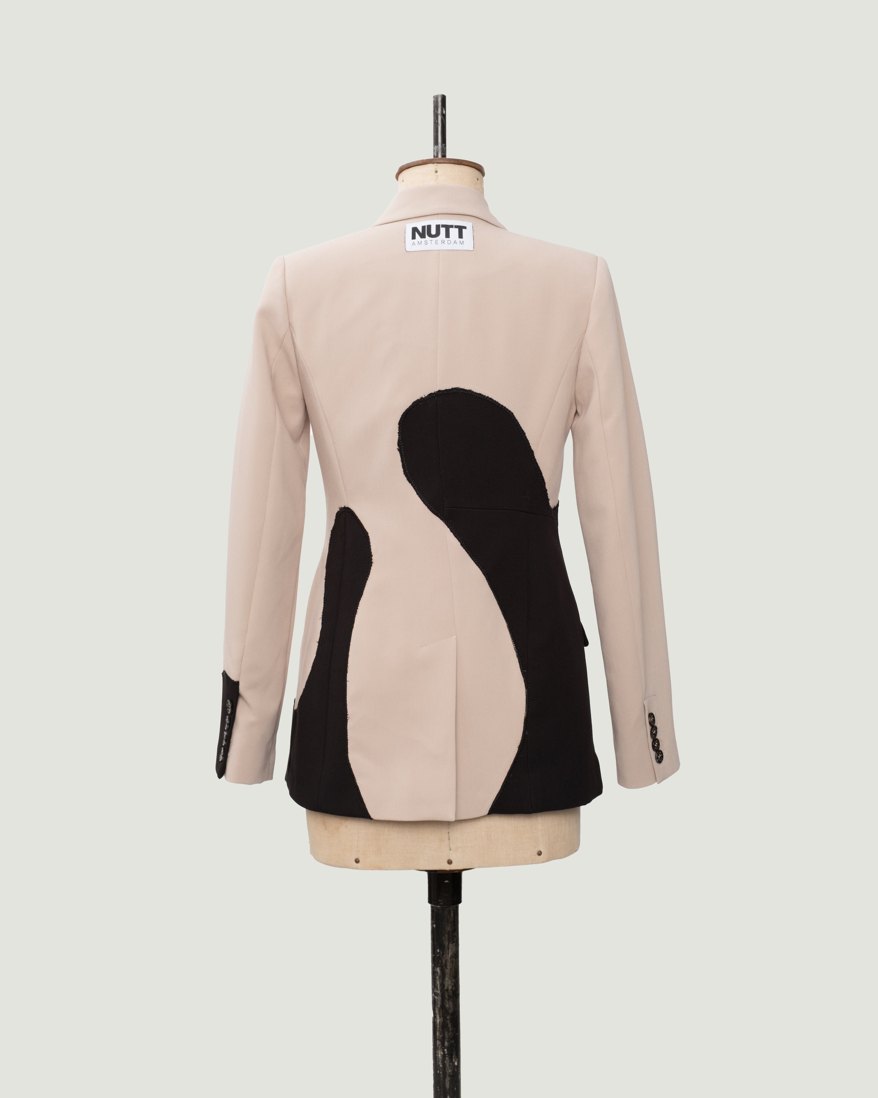 Coffee tones, chocolate waves, FLOW beweegt met attitude. Dit getailleerde jasje uit oude returns mixt zachtheid met kracht: elegant van snit, maar met een edge die blijft hangen. De golvende bruine applicatie geven beweging, ritme en karakter.